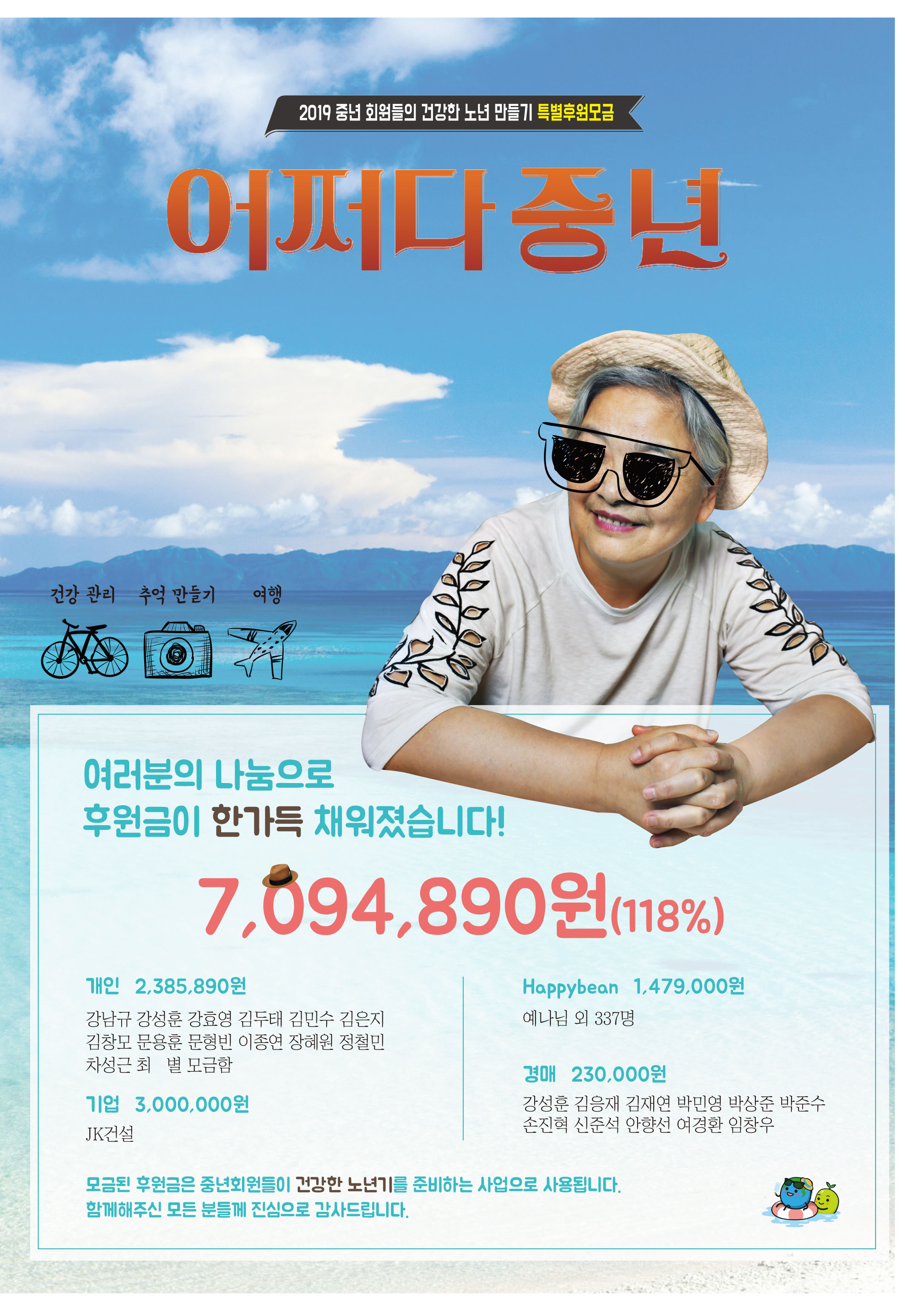 후원/후원보고 2019년 특별후원모금 [2019 중년들의 건강한 노년 만들기] 보고 태화샘솟는집 2019. 8. 13. 16:04 함께 참여해주셔서 감사합니다. 공유하기 게시글 관리 태화샘솟는집 저작자표시 비영리 변경금지 (새창열림) '후원 > 후원보고' 카테고리의 다른 글 2023년 7월 후원보고 (0) 2023.08.31 2021년 후원금 통계 (0) 2022.02.08 2018년 태화샘솟는집 세입, 세출 결산서 공지 및 2019년 2월 후원수입지출결산 (0) 2019.04.03 2016년 후원금 수입지출결산 (0) 2017.03.13 6월 후원금 수입지출내역 (0) 2015.08.11 '후원/후원보고' Related Articles 2023년 7월 후원보고 2021년 후원금 통계 2018년 태화샘솟는집 세입, 세출 결산서 공지 및 2019년 2월 후원수입지출결산 2016년 후원금 수입지출결산
