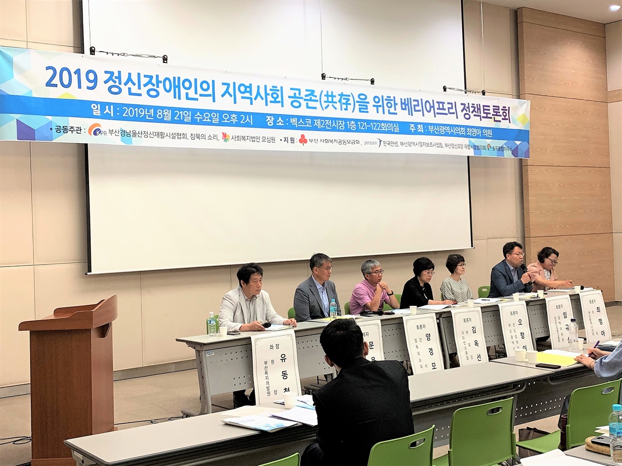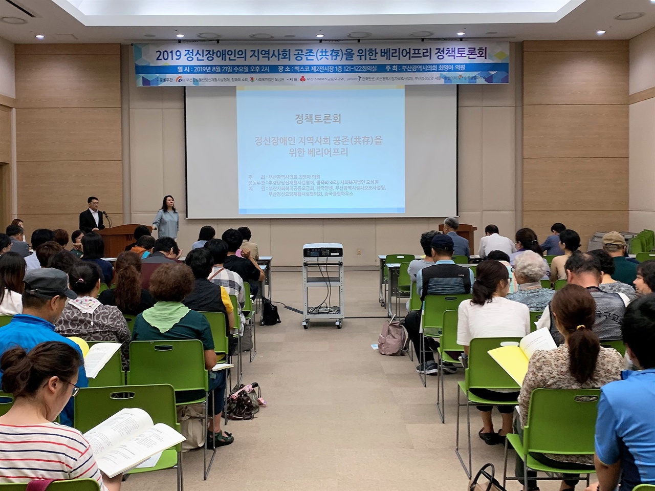 소식/언론보도 [오마이뉴스] 정신장애인이 어디서 살아가고 있는지 확인해 보셨나요? 태화샘솟는집 2019. 8. 30. 11:24 ▲ 벡스코에서 베리어프리 정책 토론회가 진행중이다. "자기 권리 위에 잠자는 자들은 그 권리를 보장받지 못한다고 합니다. 이번 토론회를 기점으로 우리들의 힘을 보여줍시다."정신장애인 인식 변화를 위한 공개 토론회가 부산 벡스코에서 21일 개최됐다. 부산광역시의회 최영아 의원이 주최하였고, 당사자 단체인 침묵의 소리와 정신재활시설협회 등이 공동주관하였다.이번 토론회는 정신장애인의 지역사회 공존을 논의하기 위한 첫 공개 토론회로 당사자, 가족, 지역주민 및 정신건강 관련 분야 전문가 약 250명 정도가 참여하였다.정책 토론회의 포문은 태화샘솟는집의 문용훈 관장이 열었다. ▲ 발언중인 문용훈 관장. "정신장애인이 어디서 살아가고 있는지 주목해야" 현재 우리나라의 정신장애인 등록 수가 10만 명 정도이지만 국제 기준으로 보았을 때 현재의 3배 정도는 되어야 한다. 문용훈 관장은 아직 미등록자가 많은 문제는 여전히 정신장애인이 가정과 개인에게 맡겨져 있고 국가는 상황을 방조하고 있기 때문이라고 지적했다. 문 관장은 의료기관과 입·퇴원 중심이던 정신장애인 지원사업이 탈시설화 등의 지역 중심사업으로 전환되려면 등록된 정신장애인 수가 늘어날 것에 대한 대비와 지역 재활 인프라 구축 등 다양한 지점의 고민이 필요하다고 강조했다. "정신장애에 대한 교육 필요해"문용훈 관장은 첫 번째로 교육의 필요성을 들었다. 정신 장애인들이 밖으로 나오려면 사회적 스티그마로 인한 압박감을 밖에서부터 없애주어야 한다. 특히 대부분 시민이 정신장애에 대한 정보를 조현병 강력범죄 등의 큰 사건을 통해 접하여 두려움이 증폭되고 있기 때문에 시민과의 긍정적인 접촉을 늘리는 방법을 강구해야 한다고 주장했다. 공공전달체계의 개편도 주문했다. 특히 사회복지 예산이 지방자치단체가 자율적으로 확보하는 것으로 이양되면서 정신장애인의 재활 및 복지와 관련된 예산은 신체장애인 재활시설 운영보다도 힘든 상황이 되었다고 토로했다. 법적으로 정신장애인과 장애인의 서비스가 분리된 아이러니한 상황을 극복하고 종별(노인·아동·장애인)서비스를 하나로 통합하여 지역 곳곳에서 모두가 복지서비스를 이용할 수 있도록 해야 한다고 주장했다."주거 서비스가 제 1번이 되어야"그는 정신장애인 복지서비스가 쓸모 있게 되려면 거주지 마련과 최소 3명 중 1명이 재입원하게 되는 상황을 방지하기 위해 퇴원 1개월간 별도의 집중 케어 및 지원이 필수적이라고 밝혔다. 이후 고용지원 서비스, 활동 지원 서비스, 후견 업무 등의 서비스도 기존 신체장애인 만큼 고려되어야 한다고 주장했다. ▲ 왼쪽 첫번째부터 최영아 의원, 임규설 위원장. 오향미 주무관, 김옥선 부회장, 양경모 간사,유동철 부산 복지개발원 원장. 발제 이후 토론에서는 부산 내의 부족한 주거재활시설과 탈시설화에 대한 준비가 부족한 부산광역시 정신건강실태에 대한 성토가 이어졌다. 현재 부산 지역의 정신재활시설은 13개로 서울 105개에 비해 턱없이 부족하다. 전국적으로 지역사회 통합과 당사자 중심을 이야기하는 3세대 재활서비스가 활발히 논의되고 있지만, 지역사회 참여를 돕는 2세대 재활서비스 조차 제대로 굴러가지 않고 있다. 당사자 단체 침묵의 소리 간사 양경모는 "우리가 얼마나 배제되어 왔으면 복지관 이용을 금지하는 조례가 여태 남아 있었을까"라고 토로하며 "이제라도 당사자가 조례나 정책을 만드는 것에 나서야 한다"고 말했다. 당사자 가족모임 가디언스클럽 김옥선은 "최근 턱없이 부족한 정신재활을 마련하기 위해 위해 북구 금곡동에 정신재활시설이 들어섰지만 이마저도 무산되려 한다"며 "정신재활시설 신고제조차도 까다로워 통과가 잘 안 되는데 지역주민의 허가까지 받아야 하는 허가제는 우리를 고립시키는 법안"이라며 최근 김도읍 자유한국당 국회의원이 발의한 정신재활시설 설치 관련 개정 법률안을 비판했다."부산을 정신건강 친화도시로"토론의 말미에 한국정신재활시설협회 임규설 정책위원장은 "주거시설이 원래 그렇듯 주거선택권과 이주 자유권을 보장할 수 있으면서도 단순한 주거시설이 되지 않아야 한다"고 역설했다. 또한 주변 환경에 대한 심리적 물리적 장벽을 없애는 유니버설 디자인 운동을 통해 연령, 성별, 국적, 장애 등과 관계없이 편하게 사용할 수 있도록 도시를 설계하는 것을 제안했다. "여러분들이 이야기 하는 거 솔직히 모르겠어요. 그게 중요한 거 같지 않아요. 제 아들은 15년 동안 시설 등록도 못 했어요. 누가 알려줬어야 말이지." "탈원화가 뭡니까? 탈시설화는 또 뭐죠?""미등록 정신장애인은 어떻게 해요? 지원 대책은 있나요?"토론회 이후 질의응답 시간에 정신장애인 당사자와 그의 가족들이 던진 질문이다. 텍스트에 감정을 실을 수 없어 아쉽지만 질문하다 과거의 설움에 북받친 분도 있었고 기억 저편에 있는 공포를 되새김질 한 분도 있었다.부족한 정신건강 서비스의 접근성, 당사자가 느끼는 탈시설화라는 단어에 대