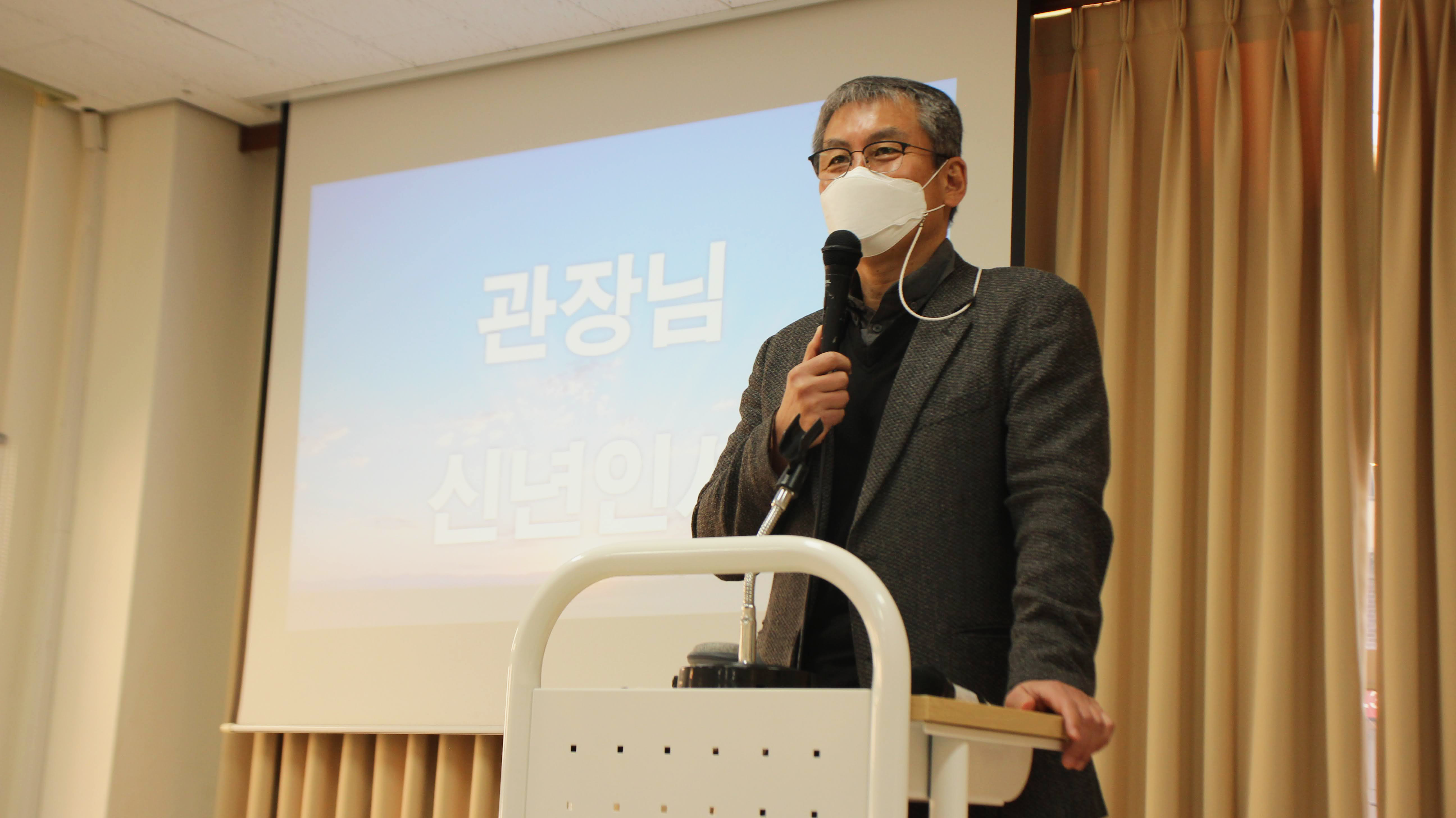 2022 시무식에서 신년인사를 하는 문용훈 관장