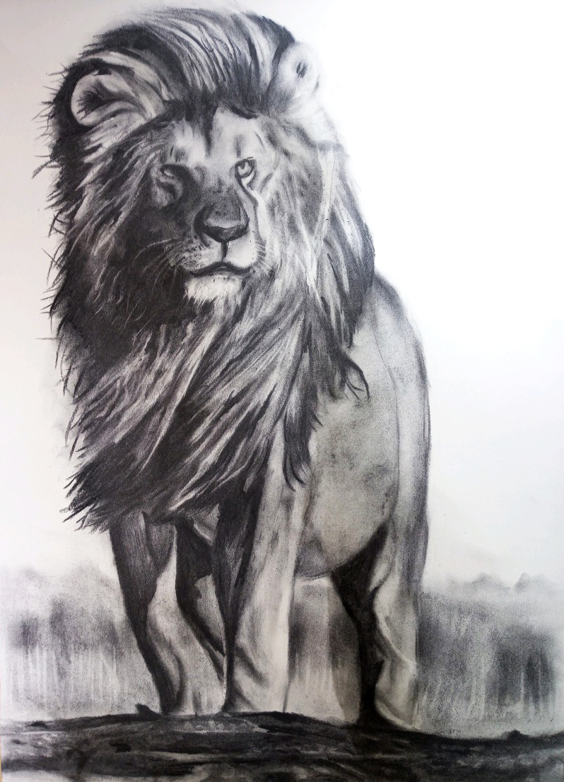 <포즈 잡는 사자>, 2022, 목탄, 60x85cm, 작가 개인 소장