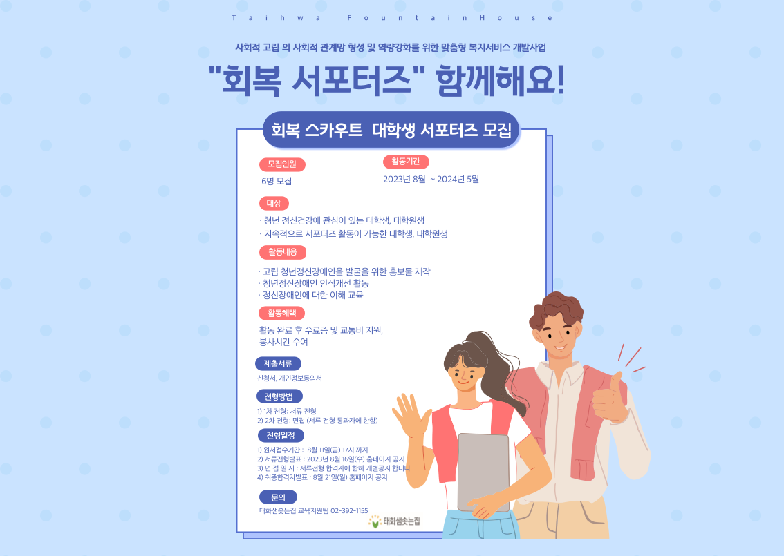 [봉사자 모집] 고립 청년정신장애인 발굴 '회복 서포터즈' 모집