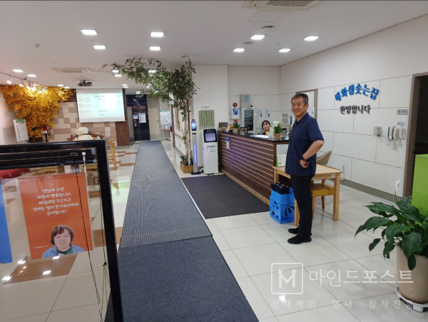 샘솟는집 로비. 문 관장은 이곳 구석에 책상 하나를 두고 일을 하고 있다. (c)마인드포스트.