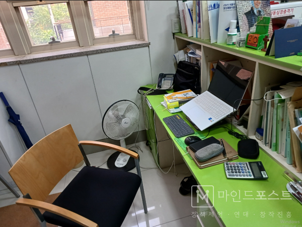 로비 구석에 있는 문 관장의 집무실. 그에게는 관장실이 따로 없다. (c)마인드포스트.
