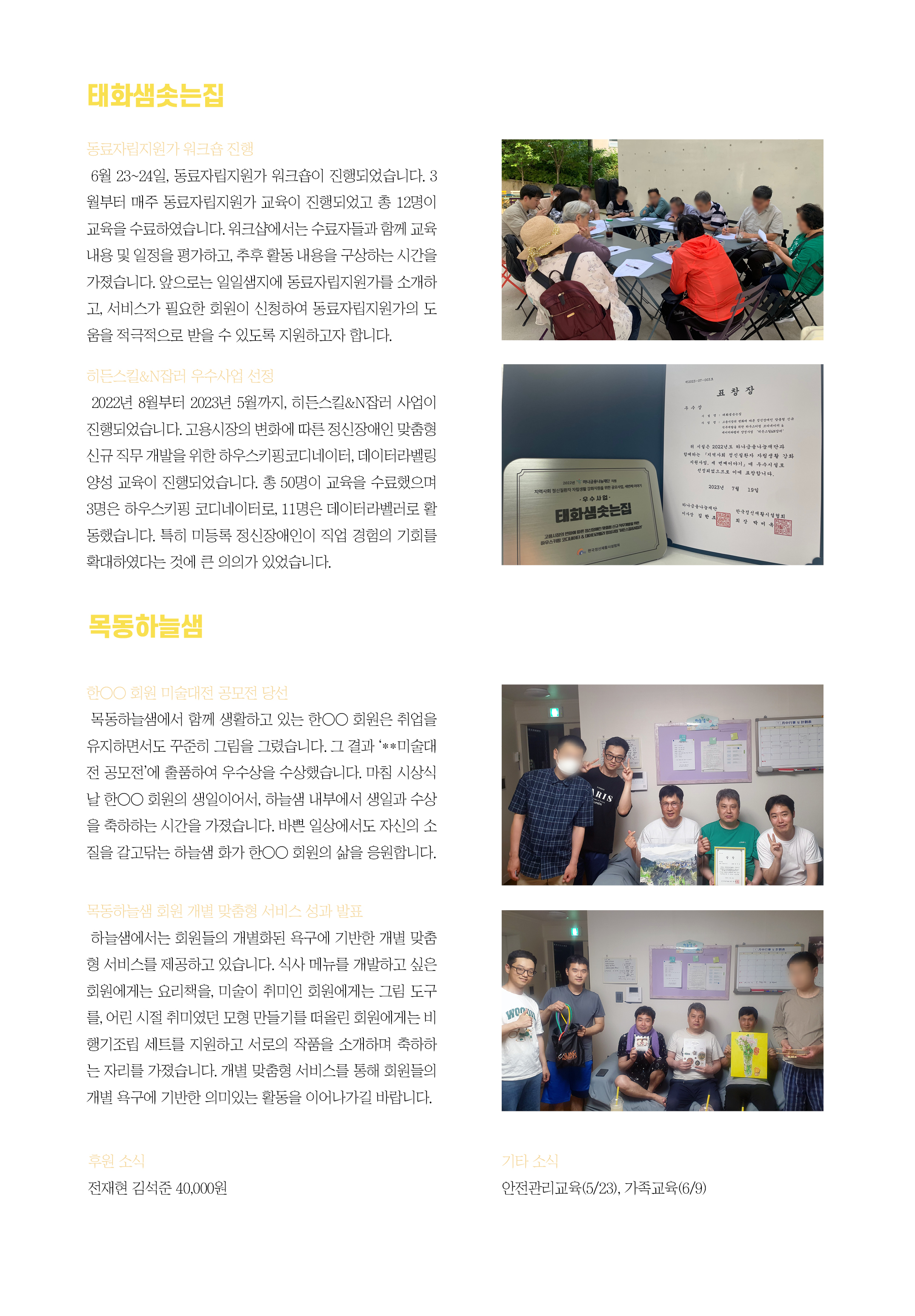 2023년 7월 태화샘솟는집, 목동하늘샘 소식