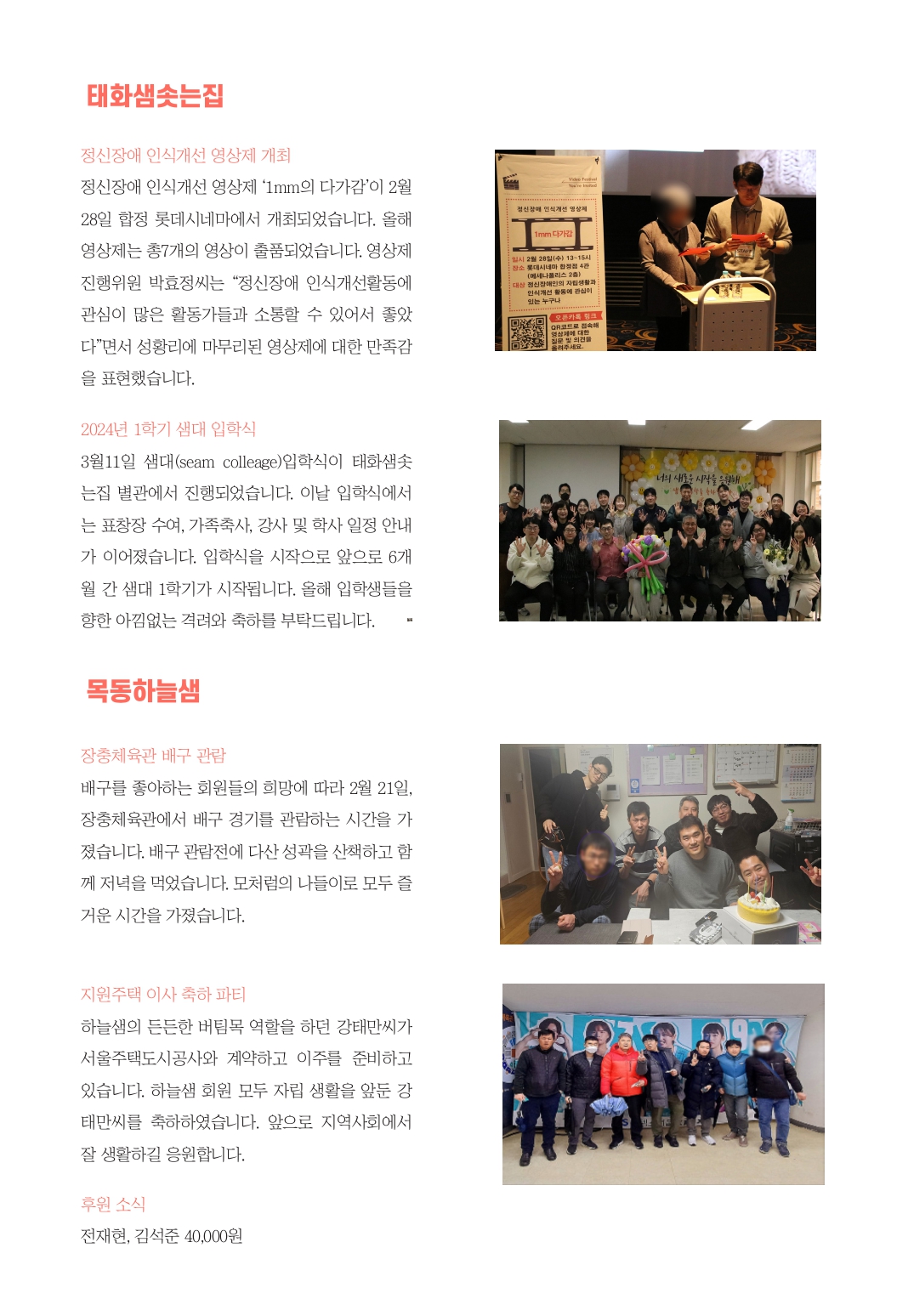 2024년 3월 태화샘솟는집, 목동하늘샘 소식