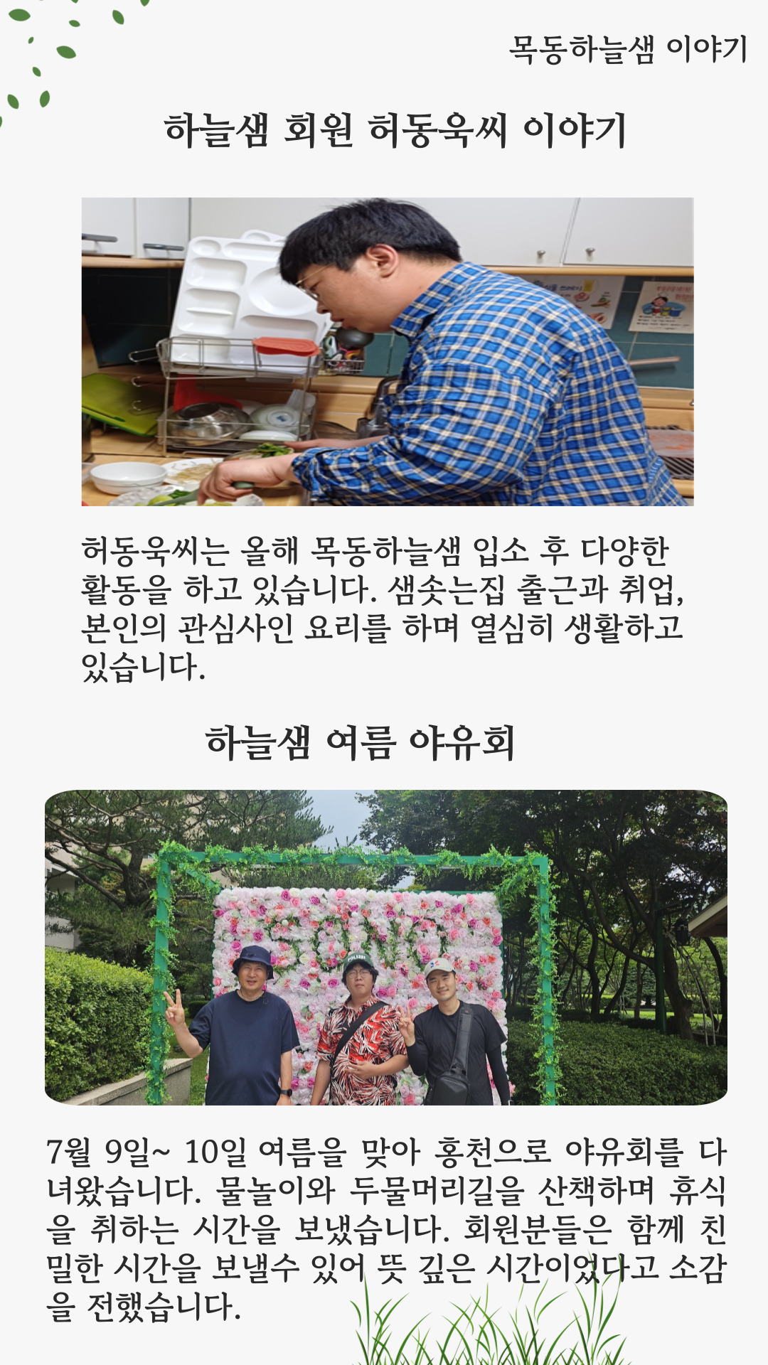 소식/샘집X산하기관 7월 목동하늘샘 소식 태화샘솟는집 2024. 7. 31. 09:35 공유하기 게시글 관리 태화샘솟는집 저작자표시 비영리 변경금지 (새창열림) '소식 > 샘집X산하기관' 카테고리의 다른 글 2024년 12월 태화샘솟는집, 스롤라인 소식 (0) 2025.01.02 9월 목동하늘샘 소식 (0) 2024.09.24 2024년 6월 스롤라인 소식 (0) 2024.07.08 2024년 5월 목동하늘샘 소식 (0) 2024.05.30 2024년 4월 태화샘솟는집, 스롤라인 소식 (0) 2024.05.09 '소식/샘집X산하기관' Related Articles 2024년 12월 태화샘솟는집, 스롤라인 소식 9월 목동하늘샘 소식 2024년 6월 스롤라인 소식 2024년 5월 목동하늘샘 소식
