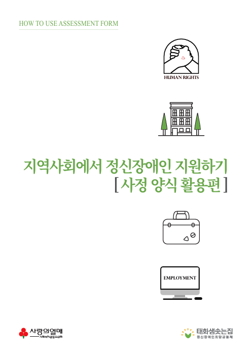 자료실/자료실 [아름답게터잡기 시즌2/PDF] 지역사회 정신장애인 지원하기 [사정 양식 활용편] 태화샘솟는집 2024. 8. 22. 13:47 본 욕구사정 가이드북은 '아름답게 터잡기 season 2' 사업의 일환으로 사회복지공동모금회의 지원을 받아 제작하였습니다. 욕구사정 가이드북을 사용하실 때는 반드시 출처를 밝혀 주시길 바랍니다. 지역사회에서 정신장애인 지원하기 [사정 양식 활용편].pdf 0.62MB 공유하기 게시글 관리 태화샘솟는집 저작자표시 비영리 변경금지 (새창열림) '자료실 > 자료실' 카테고리의 다른 글 [청년 회복스카우트/PDF] 사회적고립 청년정신장애인 지원 기관 실무자를 위한 가이드북 (0) 2025.07.25 클럽하우스 소개 리플렛 (0) 2024.11.19 [아름답게터잡기 시즌2/PDF] 자립준비교육 매뉴얼(교육자용) (0) 2024.07.11 <태화샘솟는집> 개인정보 처리방침 (0) 2024.07.09 태화샘솟는집 개인정보처리방침 (0) 2024.06.28 '자료실/자료실' Related Articles [청년 회복스카우트/PDF] 사회적고립 청년정신장애인 지원 기관 실무자를 위한 가이드북 클럽하우스 소개 리플렛 [아름답게터잡기 시즌2/PDF] 자립준비교육 매뉴얼(교육자용) <태화샘솟는집> 개인정보 처리방침