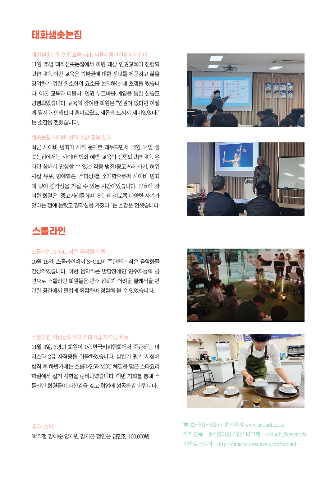 2024년 12월 태화샘솟는집, 스롤라인 소식