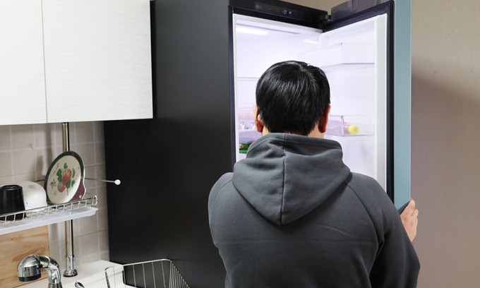 손정환(35·가명)씨가 ‘아답터’를 통해 지원받은 냉장고 안에서 음식을 꺼내고 있는 모습. 이제원 선임기자