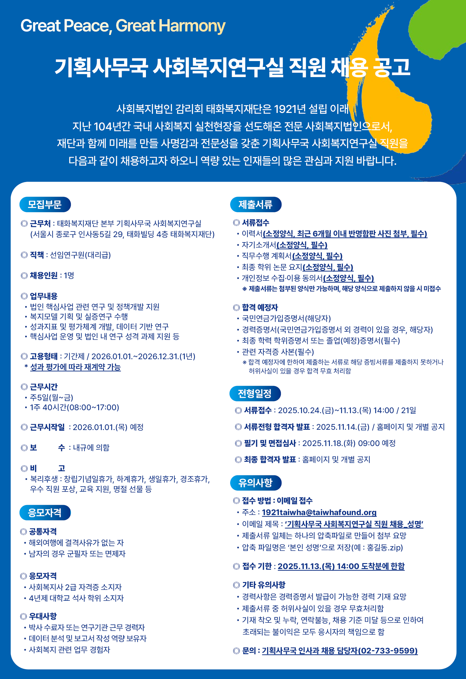 [태화복지재단] 기획사무국 사회복지연구실 직원 채용