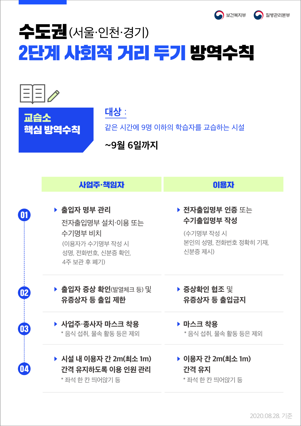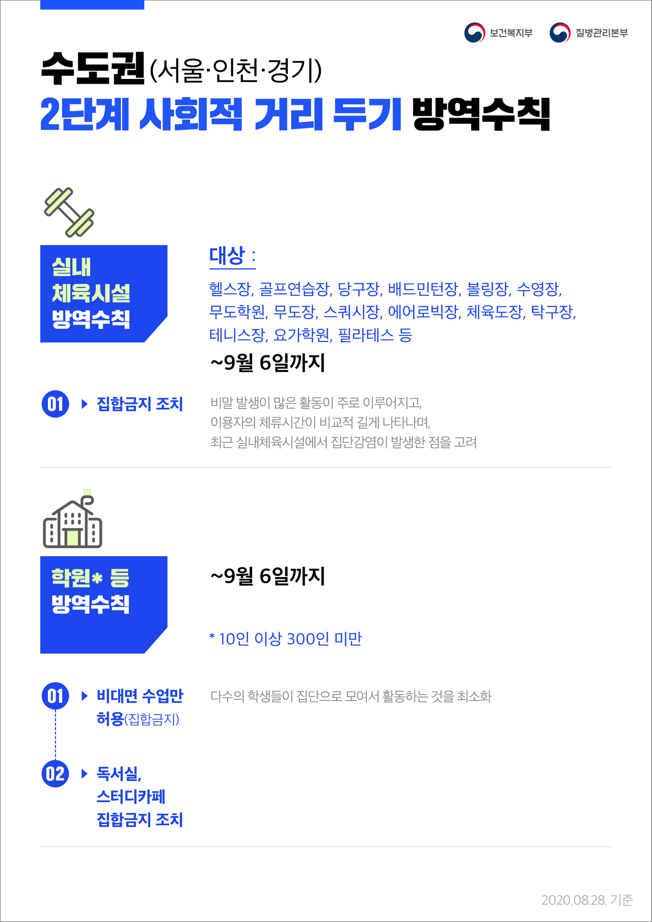 수도권 2단계 사회적 거리두기에 따른 방역수칙 안내