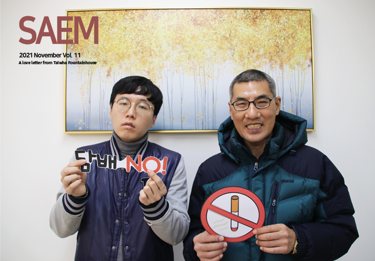 안녕하세요? 샘솟는집의 유명인사 송한울이라고 합니다. 저는 약 10년간 흡연했었고, 7개월째 금연을 유지하고 있습니다. 금연을 결심한 결정적인 이유는 샘솟는집에서의 취업 경험과 ‘아답터’ 사업이었어요. 저는 작년에 샘솟는집에서 진행했던 클린세차 매니저 양성 교육을 이수했었어요. 무슨 일이든 시작해보고 싶은 열정적인 마음과는 다르게, 당시에는 환청과 망상이 심해져 담배를 끊을 수가 없었어요. 그러던 중, 샘솟는집 직원의 권유로 히즈빈스 카페에 단기간 지지취업을 하게 되었는데, 평소 관심 있던 바리스타 업무를 배우며 커피를 만드는 것에 집중하다 보니 흡연에 대한 욕구가 점점 사라지게 되었어요. 취업 이후에는 규칙적으로 생활하며, 월급도 받게 되어 ‘나도 할 수 있다.’라는 자신감이 조금씩 생기게 되었어요. 그리고 올해는 동일건축에 입사하면서 완전히 금연하게 되었고, 현재까지 약 7개월간 금연을 유지하고 있답니다. 샘솟는집에서 진행하는 ‘아답터’ 사업도 금연을 유지하는 데에 많은 도움이 되었어요. 더 나은 자립 생활을 위한 정보도 알게 되고, 함께 요리도 만들며 즐겁고 바쁘게 생활하다 보니 ‘담배를 피우고 싶다.’라는 생각을 할 겨를이 없었어요. 담배를 끊고, 제가 좋아하는 일에 집중하며 새로운 경험을 하는 시간을 늘리니 삶도, 건강도 더 좋아진 것을 느끼고 있습니다. 가끔 담배가 생각날 때도 있지만, 가족의 건강과 저의 더 나은 미래를 생각하며 꾹 참고 있습니다. 샘솟는집 회원분들도 모두 건강하세요.