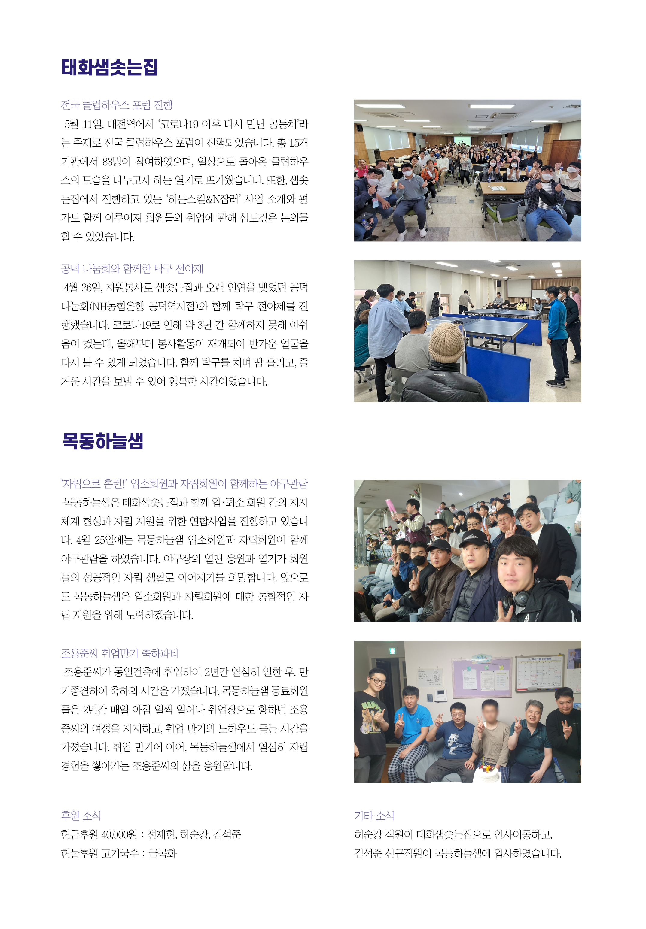 2023년 5월 태화샘솟는집, 목동하늘샘 소식