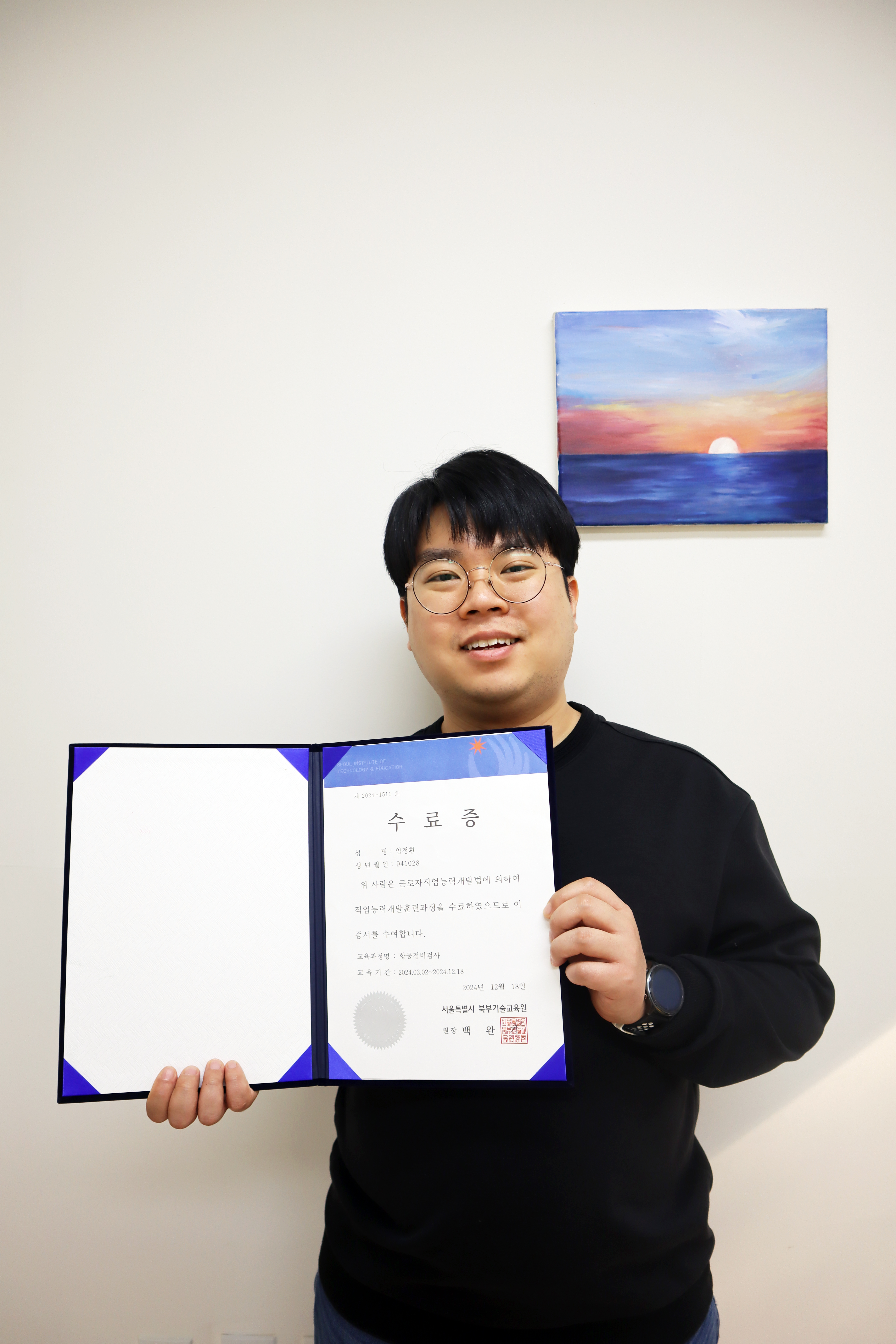 안녕하세요. 항공 정비 검사 분야 직업을 목표로 자격증 시험에 도전하고 있는 임정환입니다. 저는 작년 3~12월까지 북부기술교육원에서 항공정비와 비파괴 검사 수업을 수강했습니다. 항공기 정비와 항공기 재료와 배관 등을 파괴하지 않고 결함을 검출하는 방법을 배웠습니다. 용접부에 있는 결함을 검출해내서 사고를 미연에 방지할 수 있기에 매우 중요하다고 생각합니다.