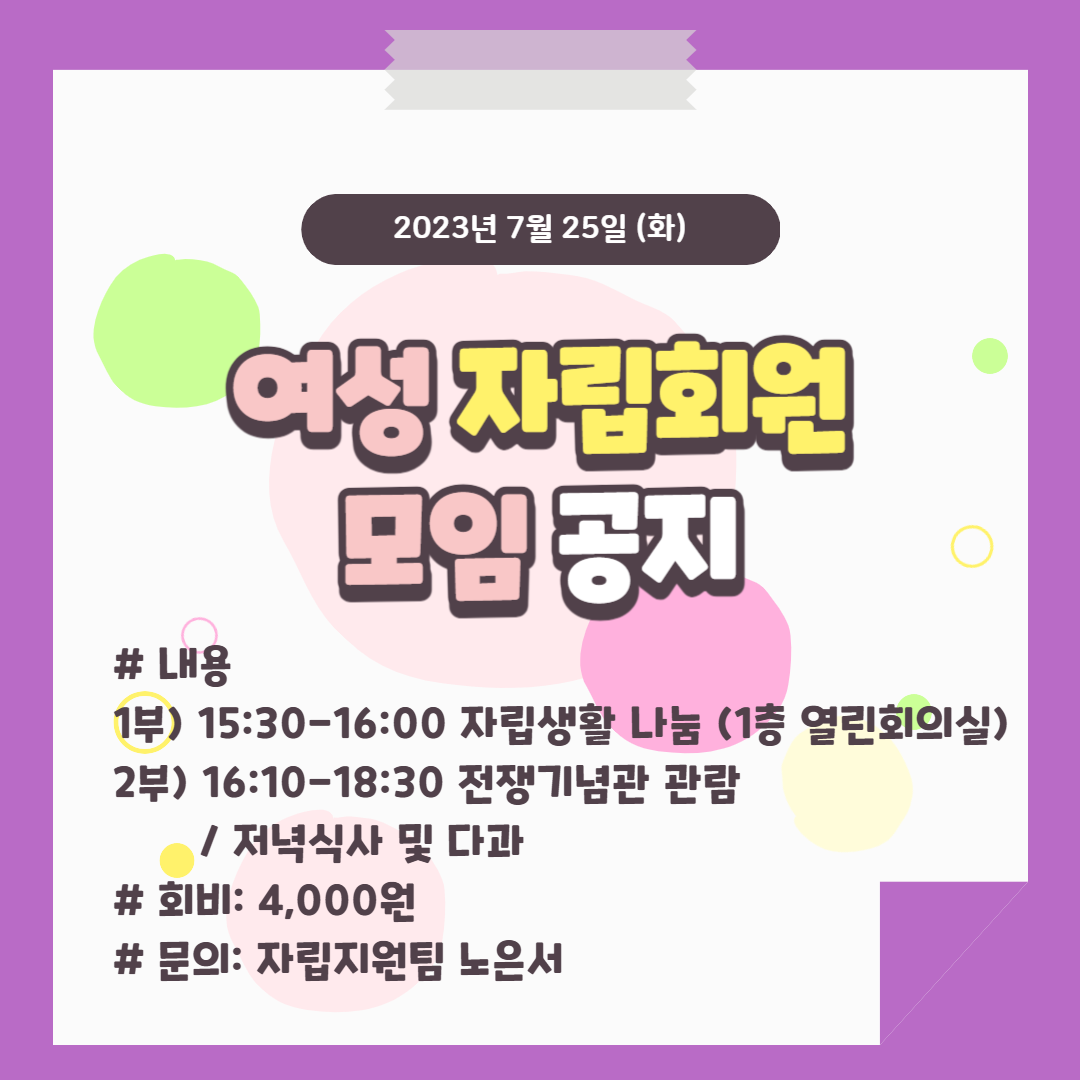 7월 25일(화) 여성 자립회원 모임 공지