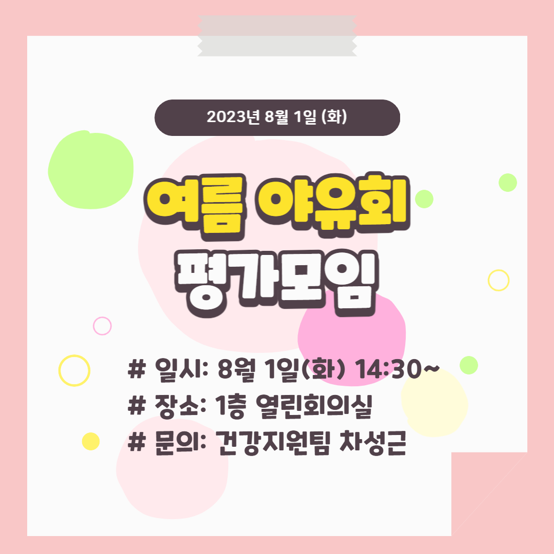 8월 1일(화) 여름 야유회 평가모임 공지