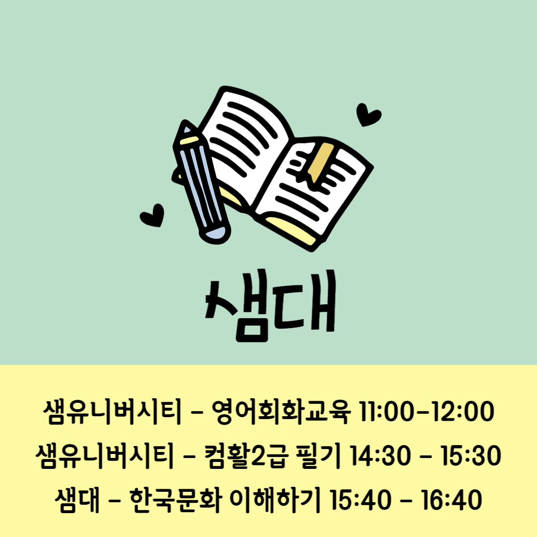 내용: 영어회화교육, 컴활2급 필기, 한국문화 이해하기