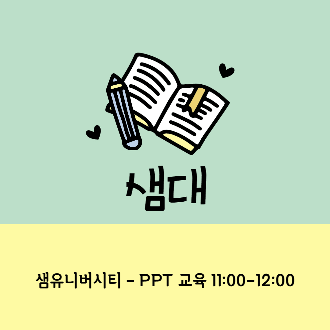 5월 18일 (목) 샘대 2023. 5. 18. 08:47 5월 18일 (목) 샘대 일시: 5월 18일(목) 11:00-12:00 장소: 2층 배움방 내용: ppt 교육 공유하기 게시글 관리 태화샘솟는집 저작자표시 비영리 변경금지 (새창열림)