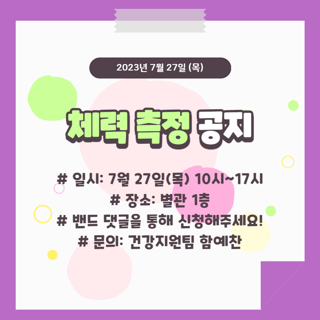 7월 27일(목) 체력 측정 공지